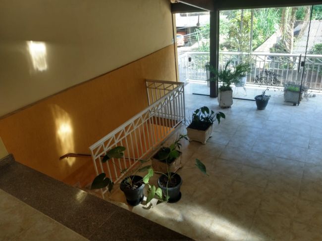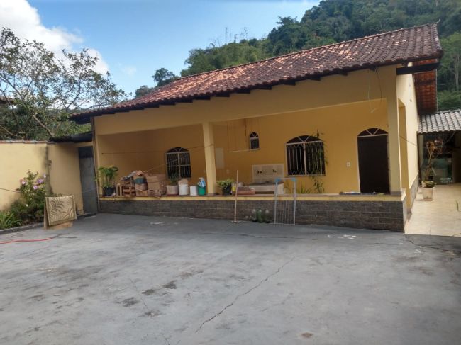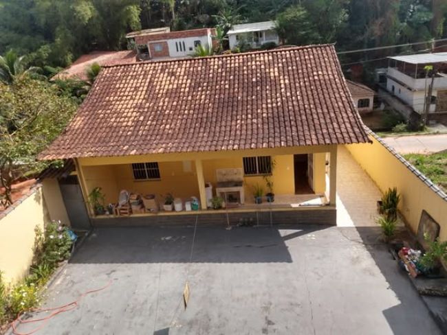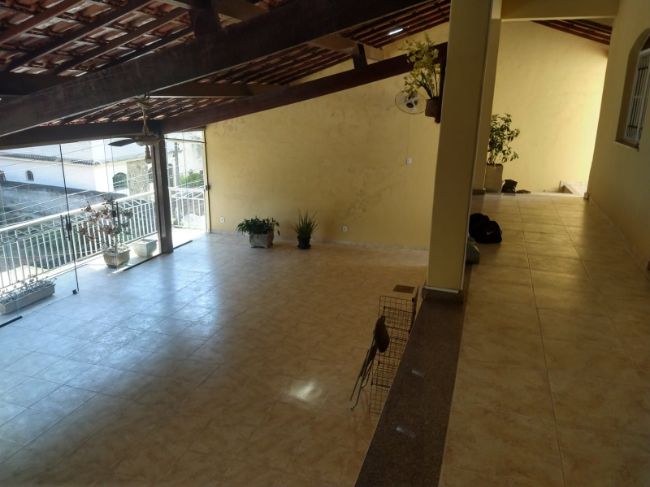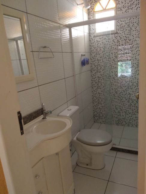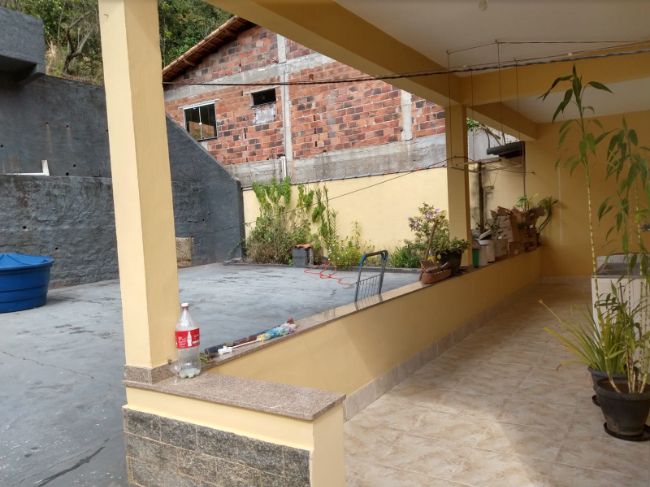 Casa com dois quartos,sendo uma suíte, sala, cozinha, banheiro social, varanda nos fundos e na frente, espaço para festa com cobertura e banheiro, garagem e um espaço comercial embaixo.